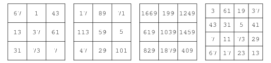First Elizabeth Campolongo talked about magic squares. First she exhibited a bunch, including these classic ones which I found here: