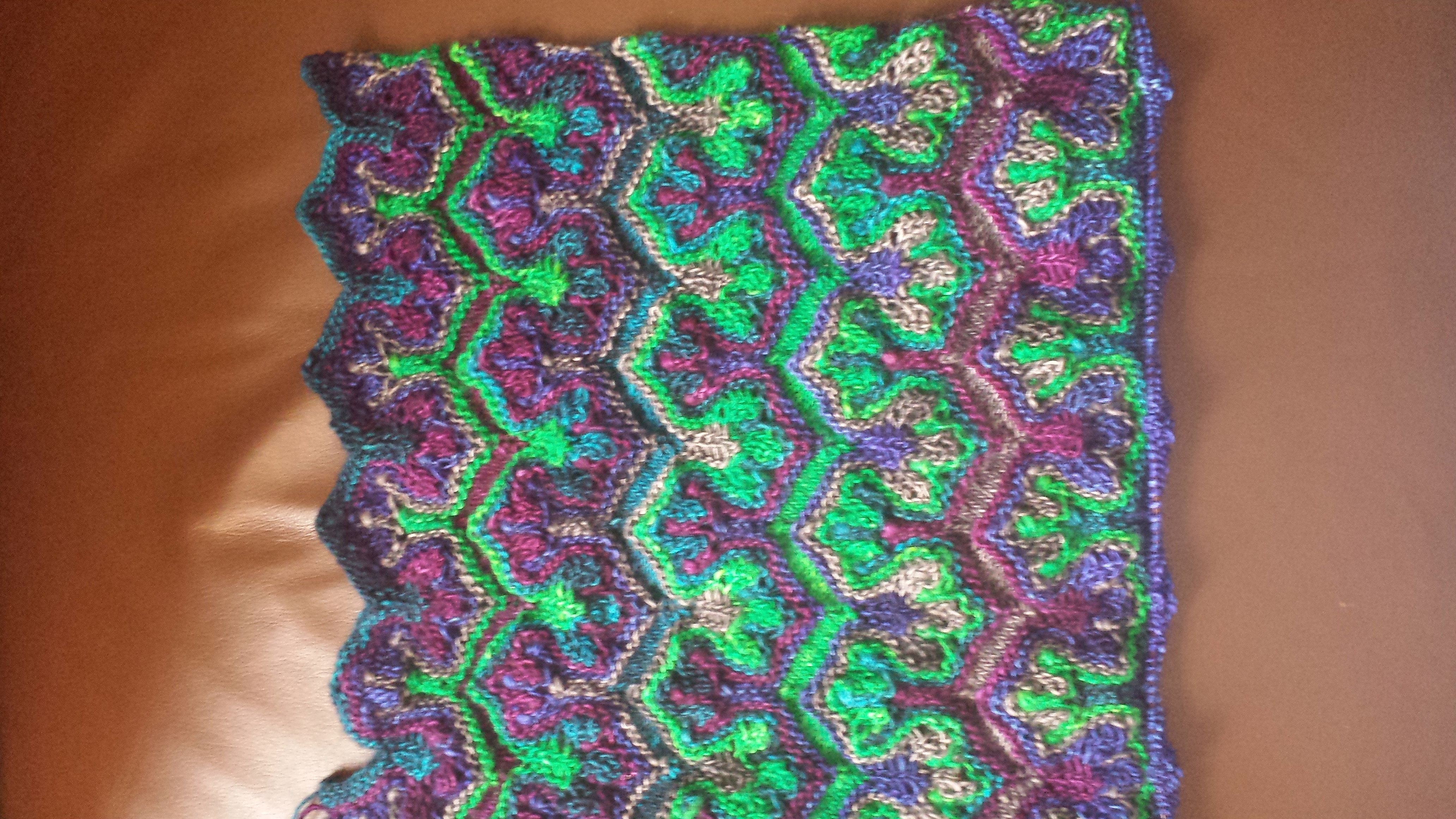 The green is leftover from a sweater Aunt Pythia knitted for her husband years ago, a wool/silk blend. Also scrumptious.