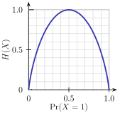 In particular, if either option has probability zero, the entropy is 0. It is maximized at 0.5 for binary variables: