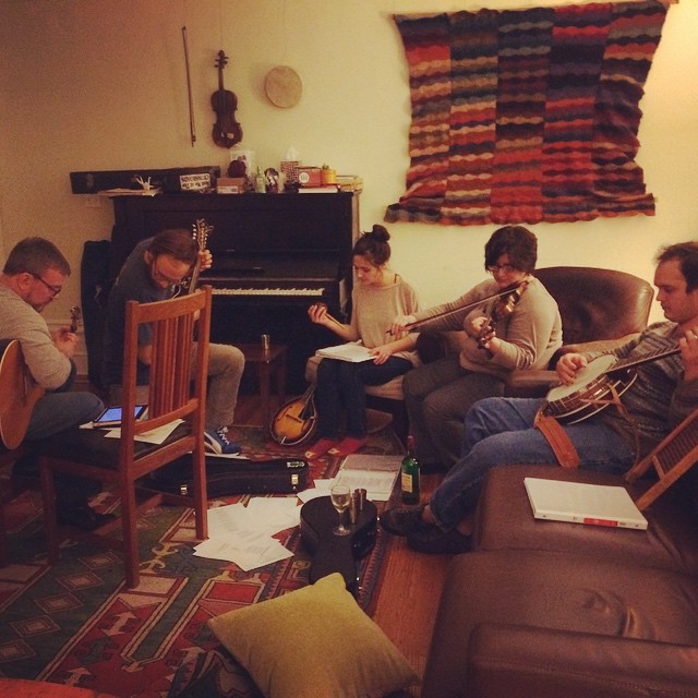 Last night my bluegrass band, the Tomtown Ramblers, was killing it at band practice. Here’s a picture of us learning a song: