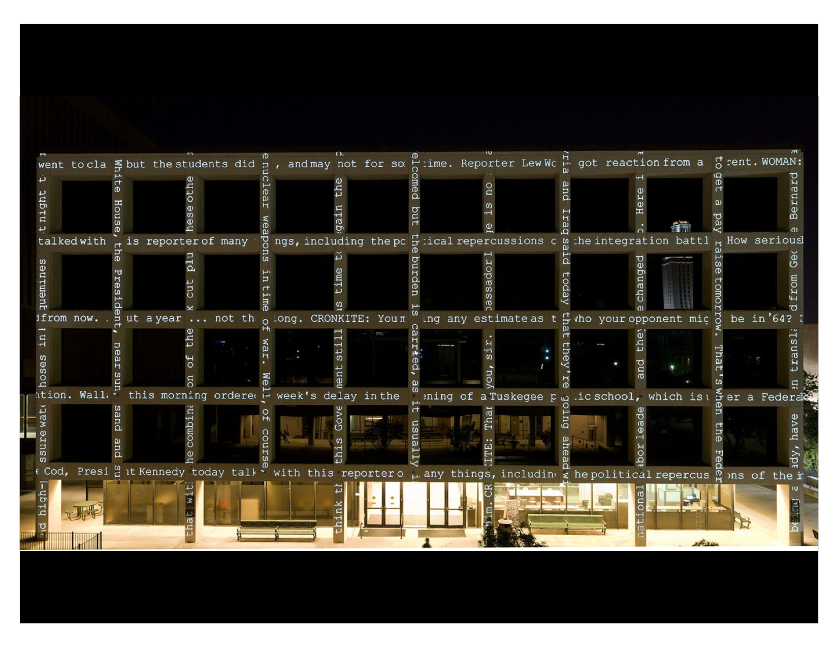 The data input is the text of each play. Each scene does something different – for example, it might collect noun phrases that have something to do with body from each play, so the “Hamlet” blade will only show a body phrase from Hamlet. In another scene, various kinds of combinations or linguistic constructs are mined: