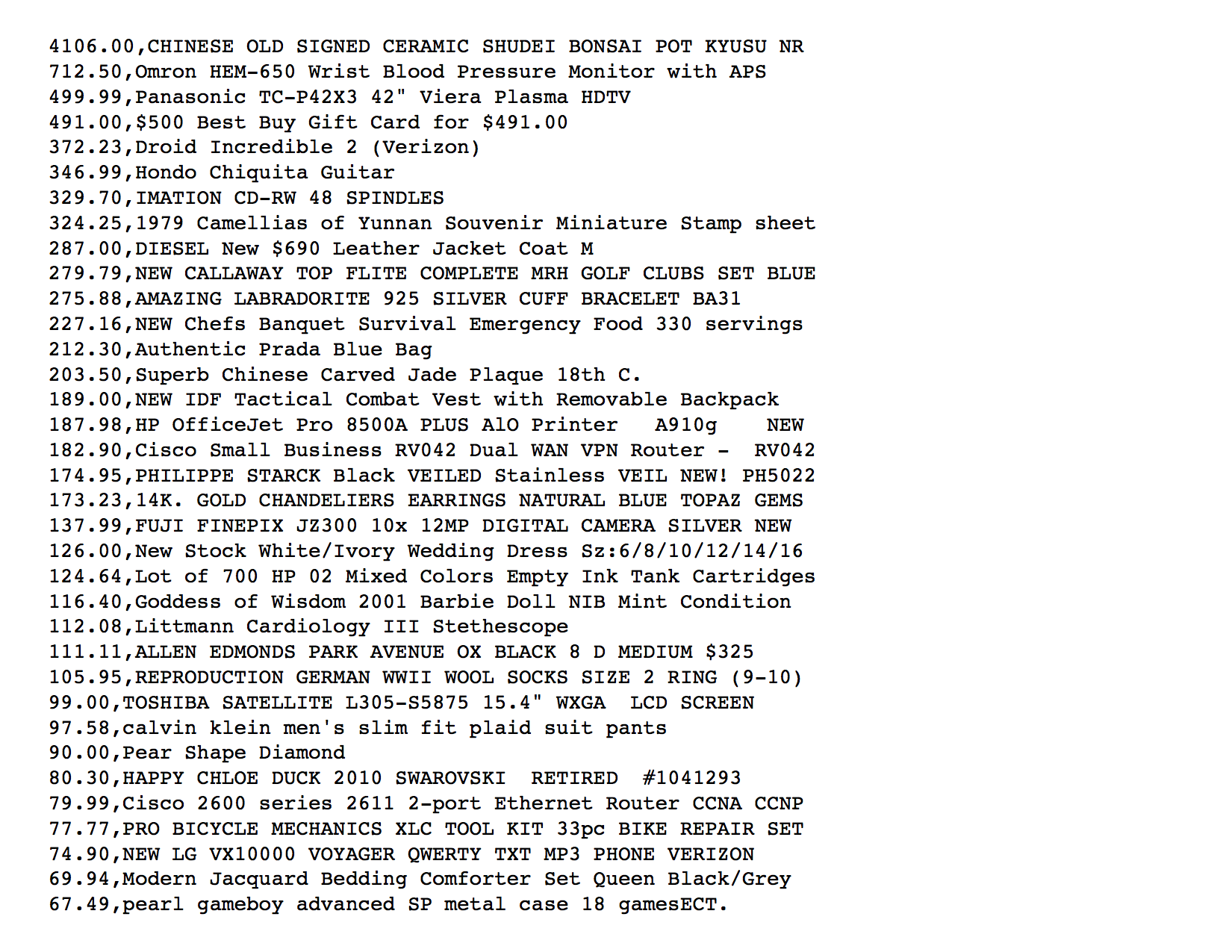 - payment data, where the fields are transaction_id, seller_id, buyer_id, amount, success (0 or 1), timestamp,