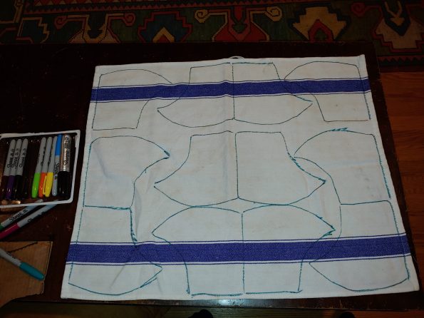 You’ll want to cut out the printed version and then outline it onto cardboard, then cut out the cardboard so you’ll have a form you can reuse a bunch of times with sharpies: