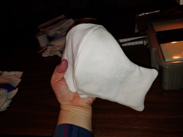 It’s time to turn this whole thing inside out by squeezing it through that two inch slit!
