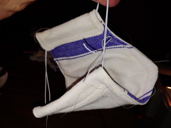 Finally, yank the elastic cord until it’s hidden inside a flap and tidy everything up by snipping off the stray threads.